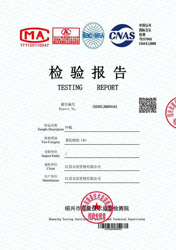 江蘇吉慶管材集團有限公司創(chuàng)辦于2010年2月,是pp管,pp管材,pp管件,pp風管,frpp管,frpp管材,pph管,pph管材,pph管件,pph風管,pvdf管,pvdf管材,pp儲罐,pp板材的專業(yè)化生產企業(yè)。公司占地30余畝,擁有各類資產8000余萬元,專業(yè)技術人員20余人,管材生產線10條,管件生產線11條,具備了10000余噸各類防腐塑料制品的年生產能力。公司通過了ISO9001-2000質量體系認證,同時被評為AAA信用單位,2018年公司被評為高新技術企業(yè),此后陸續(xù)取得安全生產管理證書等榮譽。公司位于水上花園城市----江蘇省揚中市八橋鎮永福路18號,交通便捷,可直接導航至公司園區內。公司全體員工將以高度的敬業(yè)精神,嚴格的質量控制理念和科學的管理方法,及時周到的服務,竭力為我國塑料管道在各領域的推廣和應用作出更大的貢獻!